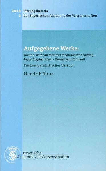 Aufgegebene Werke: Goethe: Wilhelm Meisters theatralische Sendung, Joyce: Stephen Hero, Proust: Jean Santeuil