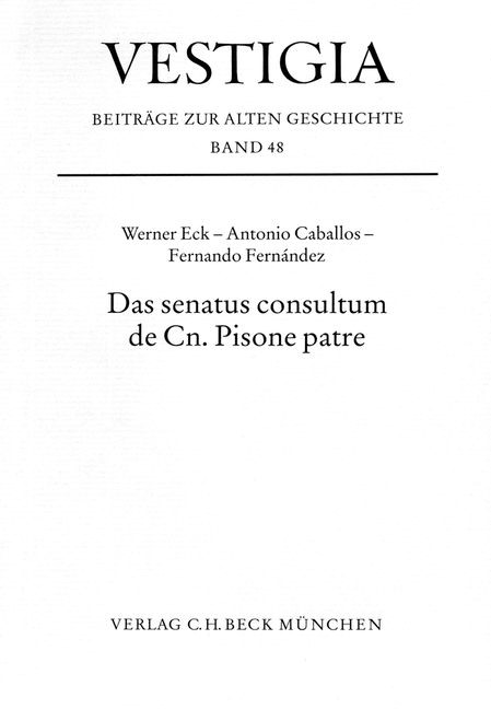 Cover: Eck, Werner, Das senatus consultum de Cn. Pisone patre