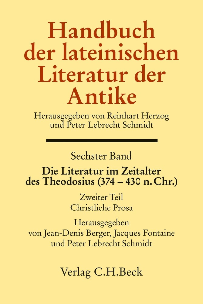 Der lang erwartete, monumentale und jetzt in zwei Teilen veröffentlichte 6. Band des Handbuchs der lateinischen Literatur der Antike ist der Epoche des Kaisers Theodosius (374 - 430) gewidmet - einer Zeit großer Blüte der lateinischen Literatur der Spätantike.