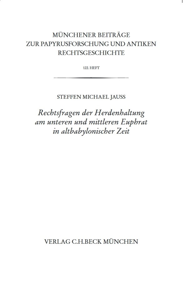 Münchener Beiträge zur Papyrusforschung Heft 122: Rechtsfragen der Herdenhaltung am unteren und mittleren Euphrat in altbabylonischer Zeit