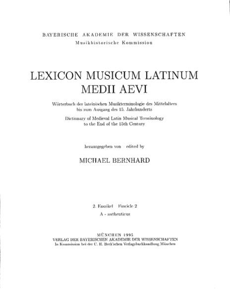 Lexicon Musicum Latinum Medii Aevi = Wörterbuch der lateinischen Musikterminologie des Mittelalters bis zum Ausgang des 15. Jahrhunderts = Dictionary of Medieval Latin Musical Terminology to the End of the 15th Century