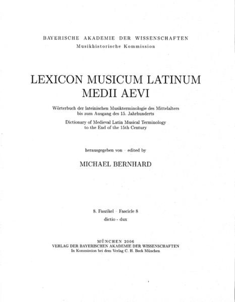 Lexicon Musicum Latinum Medii Aevi = Wörterbuch der lateinischen Musikterminologie des Mittelalters bis zum Ausgang des 15. Jahrhunderts = Dictionary of Medieval Latin Musical Terminology to the End of the 15th Century