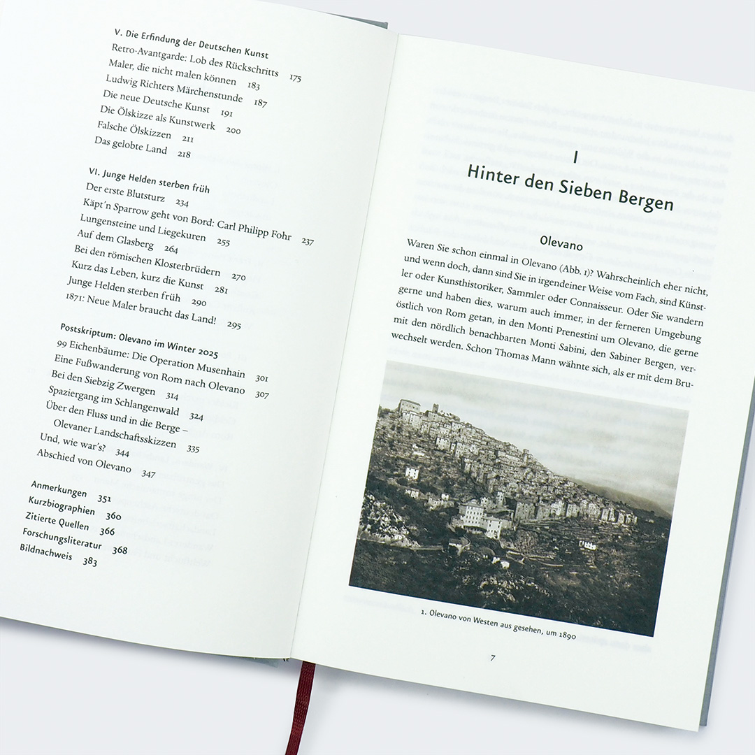 Um 1800 gab es viele deutsche Künstler, aber noch keine deutsche Kunst. Die musste erst erfunden werden. Und das geschah nicht in Deutschland, sondern in Italien, und zwar in Olevano, wo um 1820 eine kleine Gruppe romantischer Aussteiger die Zukunft in der Vergangenheit suchte. Dort oben, in der Einsamkeit der Eichenwälder, entstand fern vom römischen Trubel die erste deutsche Malerkolonie der Geschichte. Wandern und Zeichnen, Diskutieren und Phantasieren, Freundschaft und Konkurrenz, Hoffen und Verzweifeln – es ist der Traum von einer neuen deutschen Kunst, nachdem aus einem einig-deutschen Vaterland nach 1815 nichts geworden war. Viele unserer jungen Helden sterben früh, ihre Bilder aber sind geblieben – als Zeugen des Mythos von Olevano.