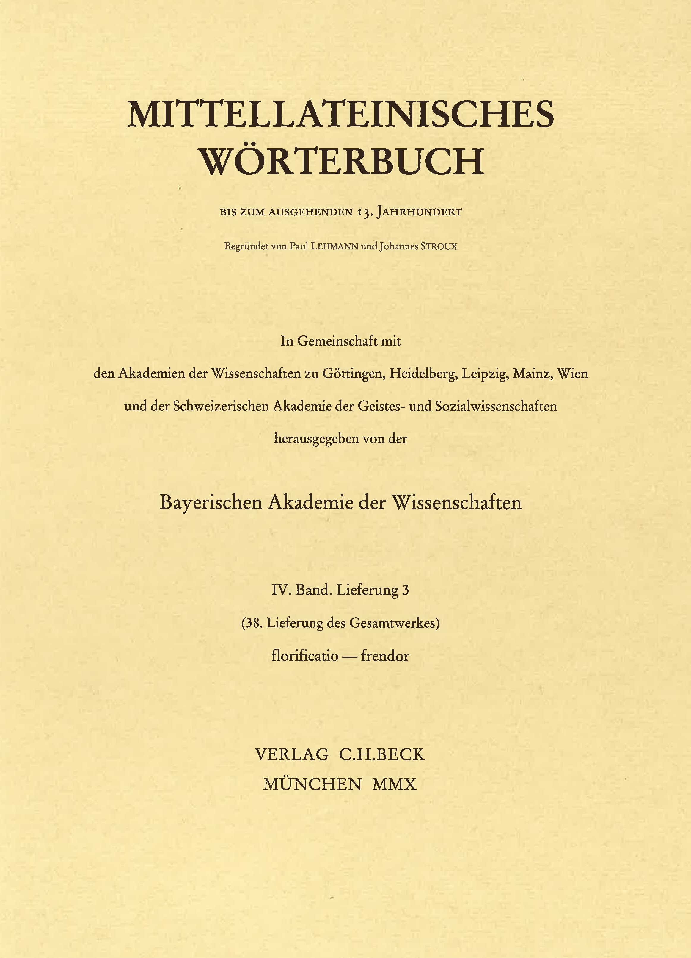 Mittellateinisches Wörterbuch 38. Lieferung (florificatio - frendor)