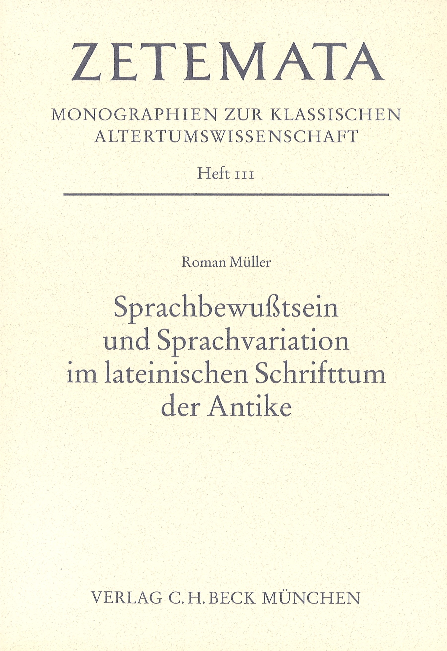 Cover: Müller, Roman, Sprachbewusstsein und Sprachvariation im lateinischen Schrifttum der Antike