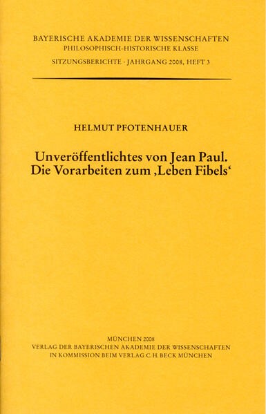 Unveröffentlichtes von Jean Paul. Die Vorarbeiten zum 'Leben Fibels'