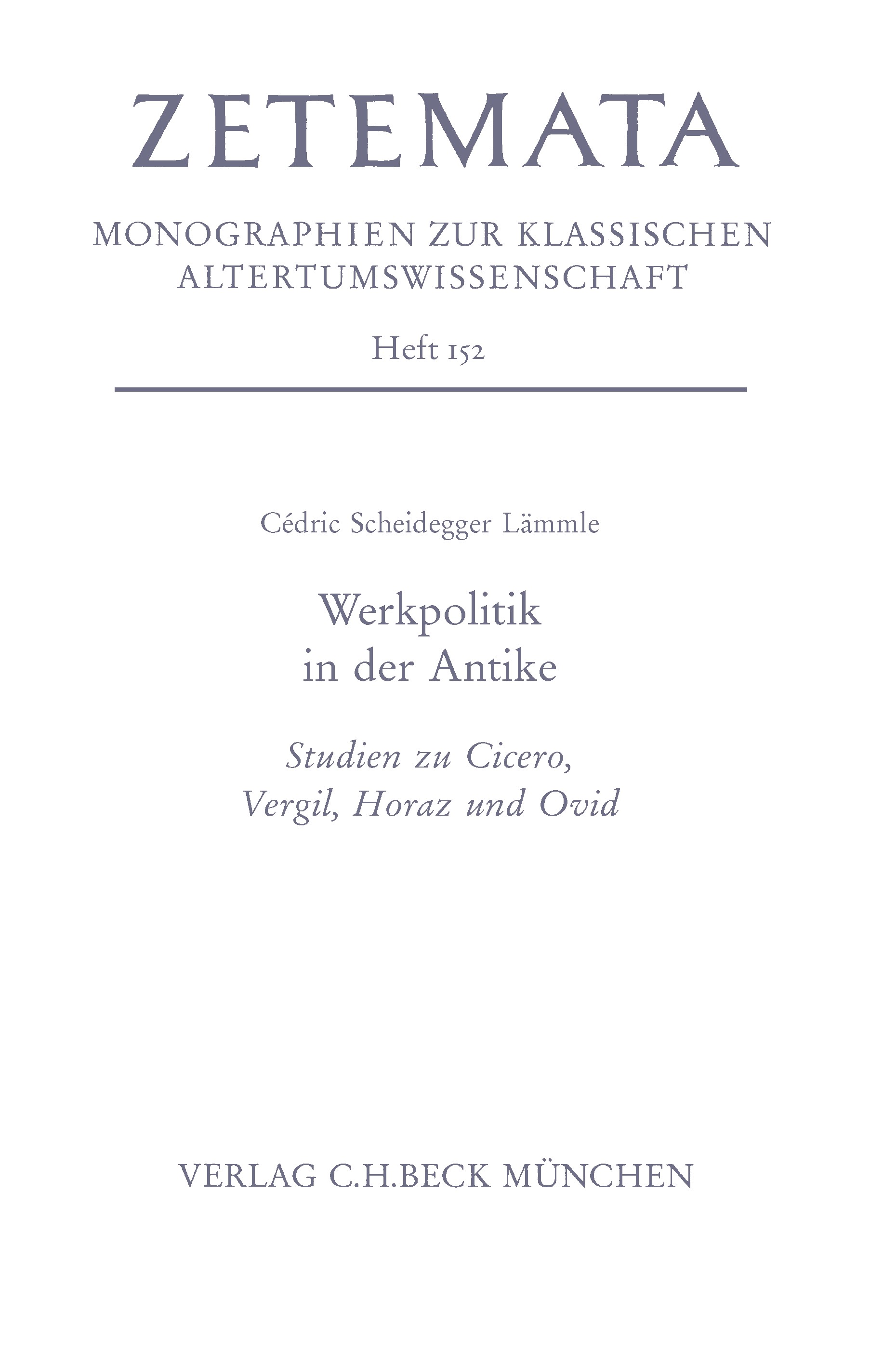 Unter den verschiedenen Formen, literarische Texte zu sammeln und zu erschließen, zählt deren Gruppierung zu einem Œuvre mit Sicherheit zu den gängigsten: Das Œuvre als Summe aller Werke eines bestimmten Autors wird dabei oft an scheinbar objektivierbaren Kriterien wie Werkbestand (Gesamtwerk) oder Autorbiographie (Spätwerk, Lebenswerk) gemessen und gleichsam als selbstverständlich betrachtet. Werkpolitik in der Antike fragt demgegenüber nach den Voraussetzungen (und ebenso nach den Auswirkungen) der Orientierung am Œuvre. Die lateinische Literatur der späten Republik und des augusteischen Prinzipats erweist sich für die Genese eines emphatischen Begriffes des auktorialen Corpus als formativ: Die Umwälzungen im literarischen Betrieb dieser Epoche, nicht zuletzt die Gründung öffentlicher Bibliotheken, bedingten bei Autoren, Kritikern und Lesern eine erhöhte Aufmerksamkeit für die Begründung von Werkzusammenhängen, welche die Idee des Œuvres nachhaltig prägte. In vier Studien zu Cicero, Vergil, Horaz und Ovid wird nachgezeichnet, wie sowohl innerhalb der literarischen Werke selbst wie in deren Rezeption bestimmte Vorstellungen von Lebens- und Gesamtwerk Gestalt annehmen konnten.