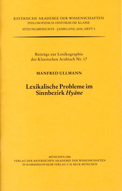 Cover: Ullmann, Manfred, Lexikalische Probleme in Sinnbezirk Hyäne