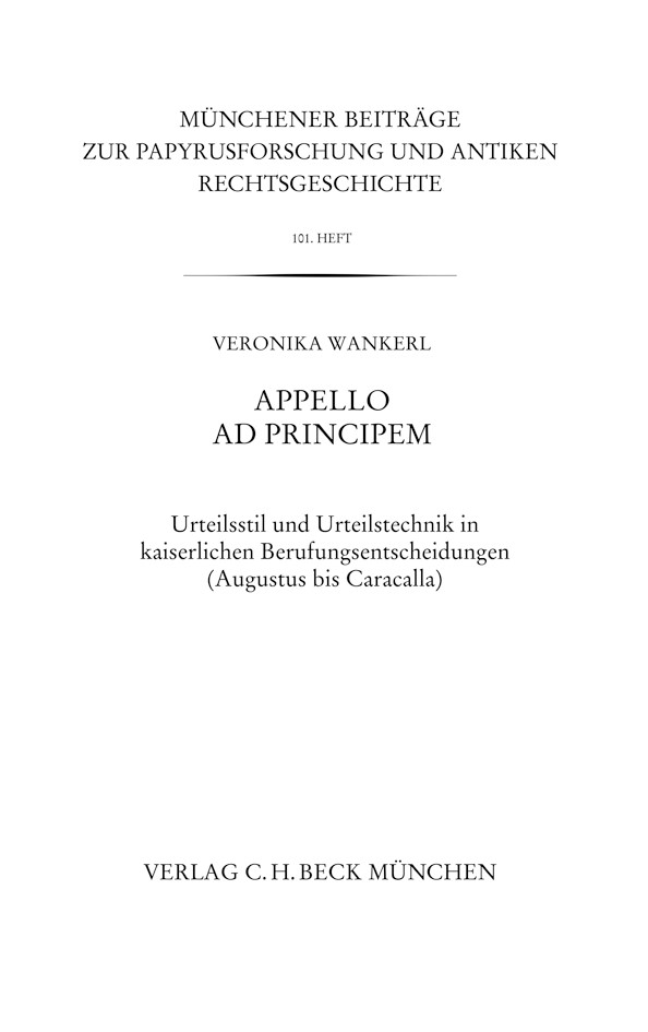 Münchener Beiträge zur Papyrusforschung Heft 101: Appello ad principem