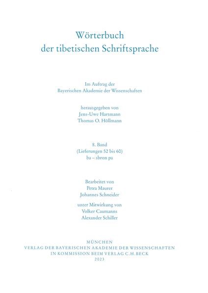 Wörterbuch der tibetischen Schriftsprache Band 8 (Lieferungen 52 – 60)