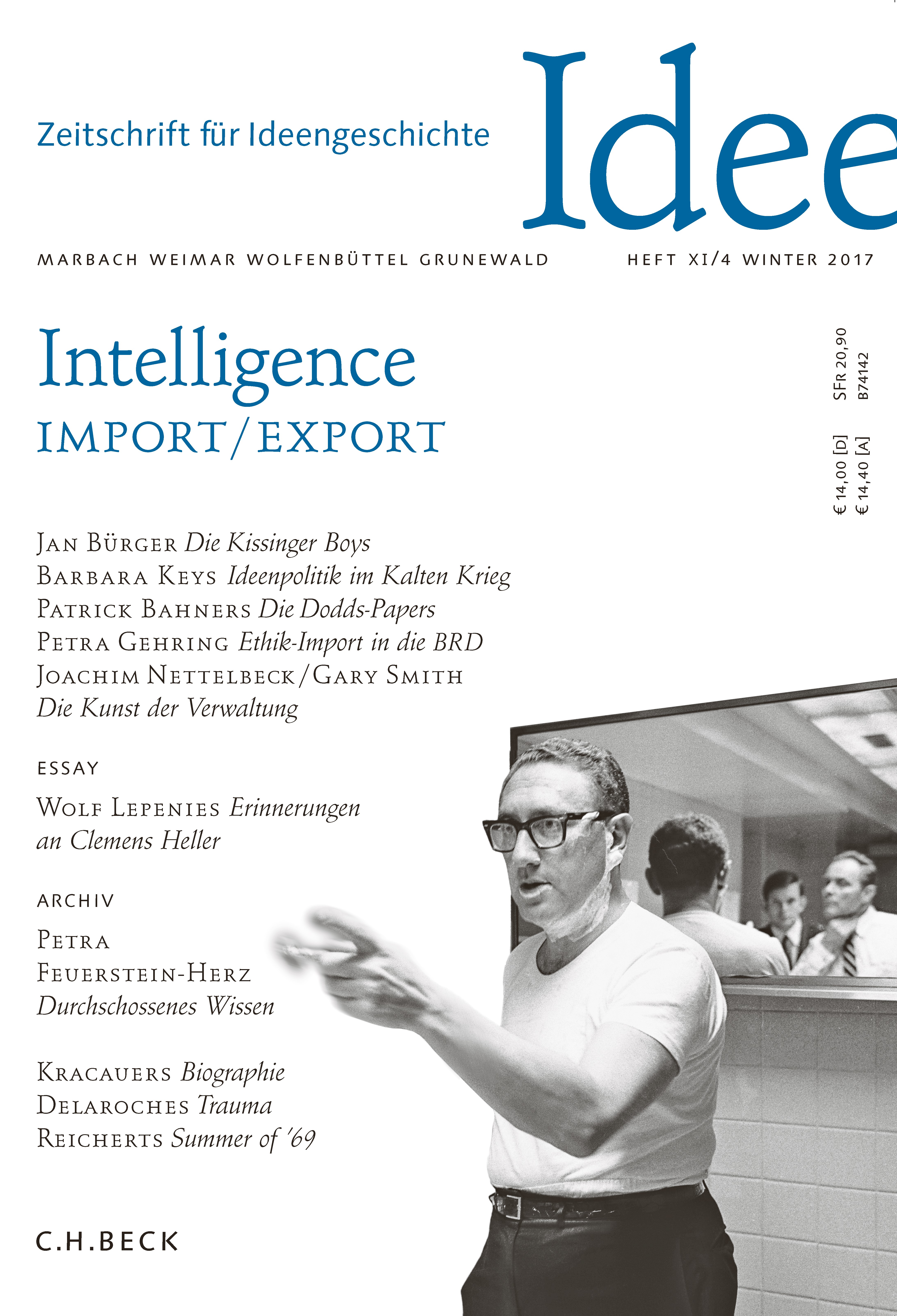 Neues vom ideenhistorischen Nachrichtendienst: "Intelligence. Import / Export". Die Winterausgabe der Zeitschrift spürt ideenpolitischen Wanderwegen diesseits und jenseits der transatlantischen Einbahnstraße nach - von Henry Kissinger bis zur Suhrkamp Culture, von der Reeducation bis zum Ethik-Import der späten Bundesrepublik. Ein eigener Schwerpunkt ist Clemens Heller gewidmet, dem legendären Tausendsassa der Maison des Sciences de l'Homme, der im Paris der Nachkriegszeit den großen Ideentransfer von der Hinterbühne der Wissenschaftsverwaltung orchestrierte.