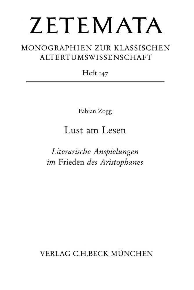 Literarische Anspielungen im Frieden des Aristophanes sind zwar bereits seit der Antike Gegenstand der Forschung, wurden aber noch nie systematisch untersucht. Neben einer Detailanalyse aller Bezüge der Komödie zu literarischen Einzeltexten werden auch die kulturellen Implikationen des Befundes in den Fokus gerückt: Die komplexe Intertextualität ist ein wesentliches Merkmal von Aristophanes’ Komödien und weckte bei den gebildeten Zeitgenossen die Lust am Lesen.